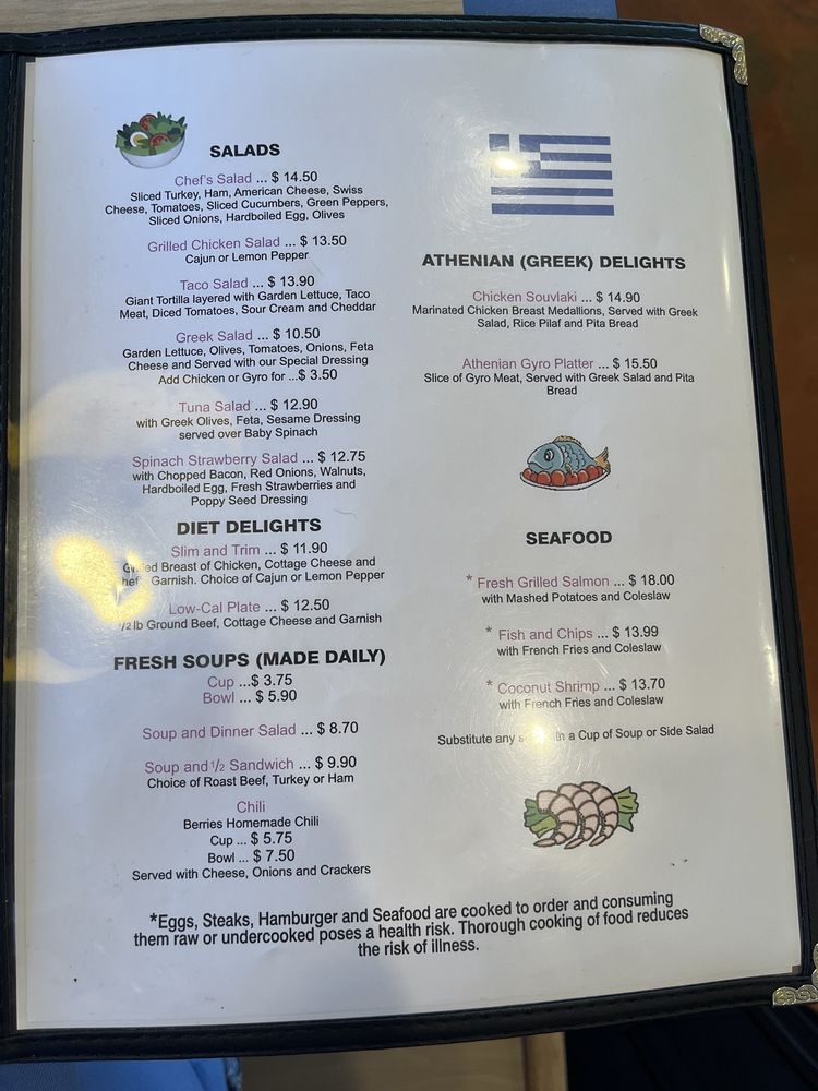 Seafood - Served with a cup of soup, or salad, mashed potatoes and coleslaw