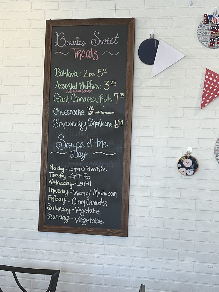 Add Berries & Whipped Cream . Add side of eggs and links or bacon strips $.
