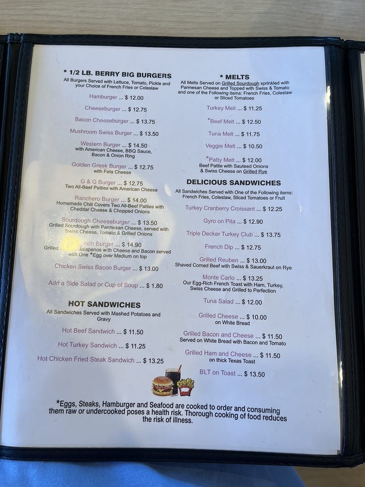 / Berry Big Burgers - All Burgers served with lettuce, tomato, pickle, and your choice of french fries or coleslaw