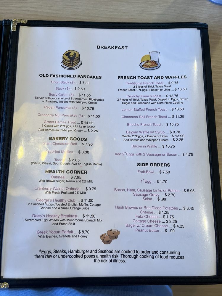 Cakes with Eggs, Links, or Bacon. Add Berries and Whipped Cream for .